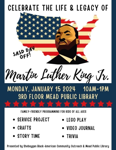 Celebrate Martin Luther King Jr. Day at Mead Library! Family-friendly activities will take place throughout the children's area at this free drop-in event. Children of all ages welcome.