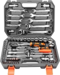 Take home an 82-piece tool set with quick release ratchet wrench, socket set, combination wrenches, extension bars and adapters.