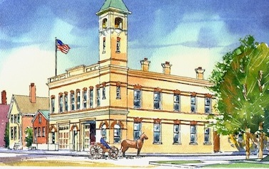 The collection of Sheboygan watercolor paintings by former Sheboygan resident Ruben Vega is exhibited in The Loft, on the third floor of the library. It was the gift of the Kohler Foundation, Inc. to Mead Public Library for the enjoyment of the public. The paintings are based on original postcard images of historic Sheboygan scenes.