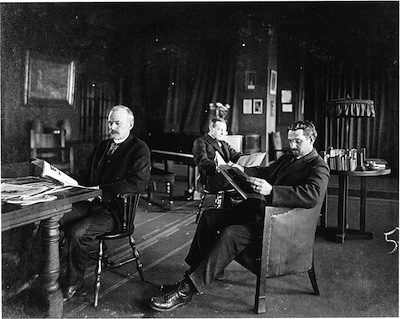 His works today can be found in the Chicago Historical Society, the Chicago Union Club, and the Supreme Court Library of the State of Illinois in Springfield, Ill. His painting "Youth and Moonlight" hangs in the Chicago City Hall, purchased by the city in 1915. His "Cabaret Breton" is in the collection of the Art Institute of Chicago. He has mural decorations in the Genesee County Courthouse in Flint, Mich. He participated in various expositions from 1888 until his death in Chicago in 1944. Cameron is seated on the left hand side of the picture.