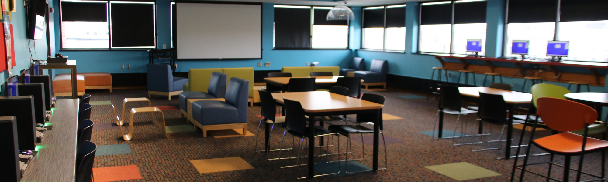 The third floor Maas Teen Learning Center provides teens with a dedicated space for gaming, watching movies and relaxing with friends. The Teen Center is open after school Monday-Friday and supervised by library staff. Teens also have access to the Hansen Teen Library Center on the second floor, which houses young adult books and provides a quiet study space. The Teen Library Center is open during normal library hours.